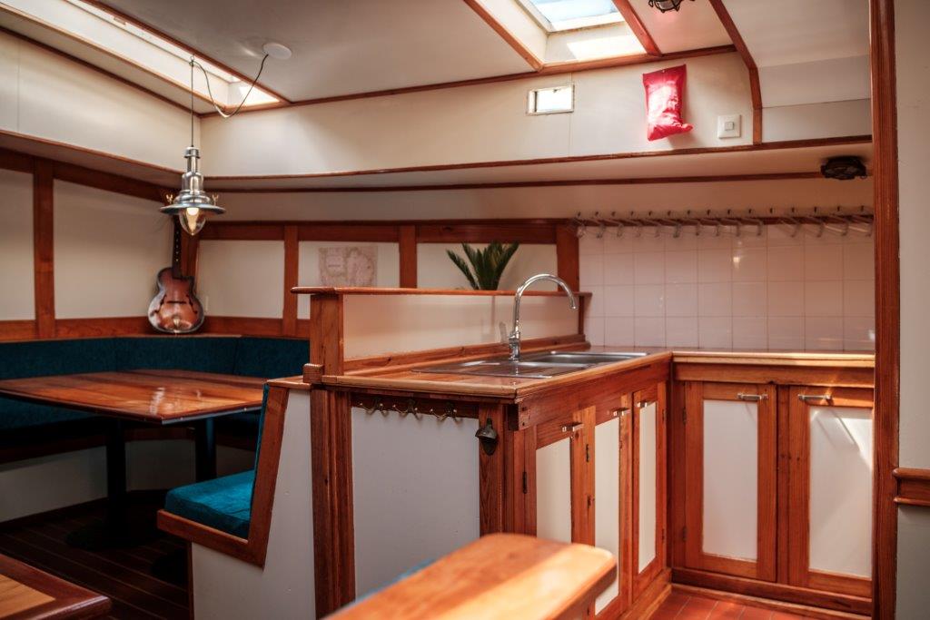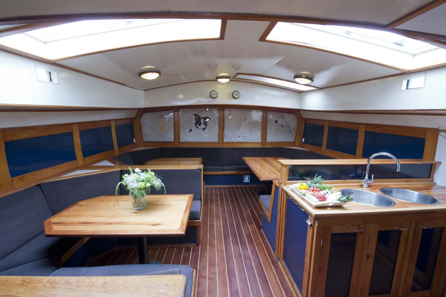 Unter Deck der Noordfries erwartet die Passagiere ein modernes, gemütliches und vor Allem intimes Ambiente. Draußen auf dem Deck lässt es sich auch gut aushalten. Die schnittige Tjalk ist ein schneller Segler, der bereits viele Preise errungen hat. Sie können mit der stolzer Eigentümer Sjoerd Wouda, aktiv mitsegeln oder auf dem Deck herrlich faulenzen. Das Segeln mit der Noordfries ist sowohl für Anfänger als auch für Fortgeschrittene eine Herausforderung.